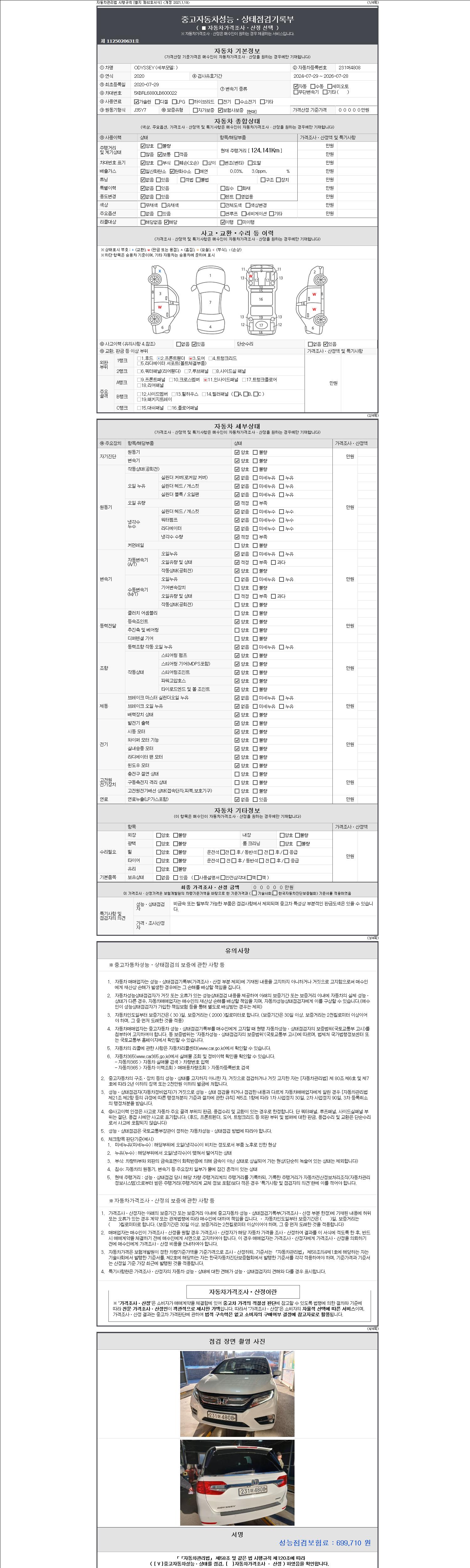 | 주행거리 | 124,141 km | 차량번호 | 231머4808 | 사고유무 | 성능기록부 참조 | 제시번호 | 제 2147483647 호 |