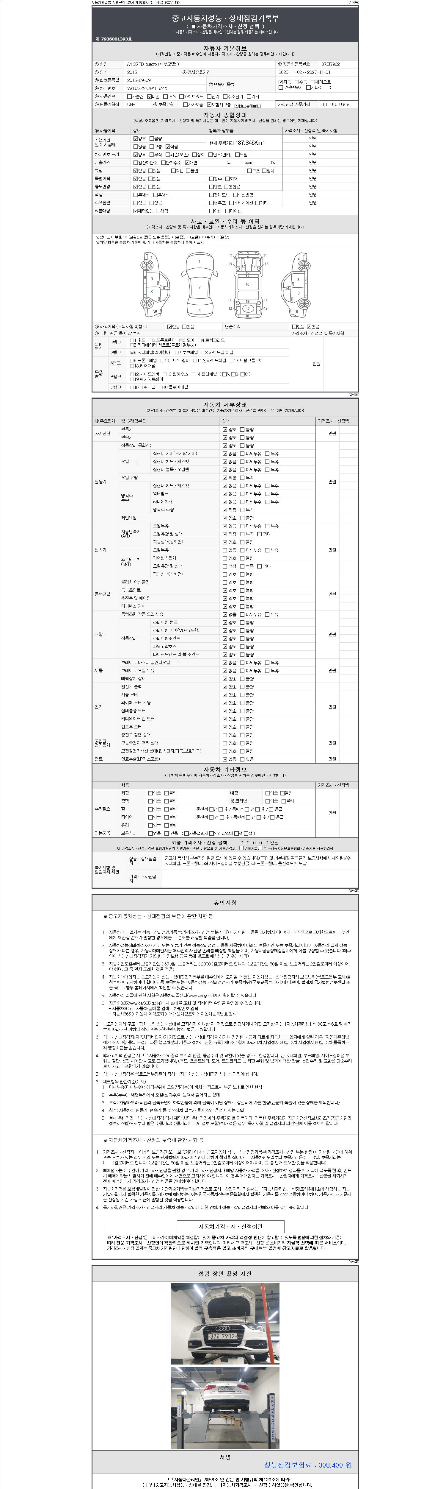 - 2. 차량 등록증이나 성능점검지 등을 상담자에게 요청및 확인하시고 사전에 미리 점검 하시기를 권유드립니다.