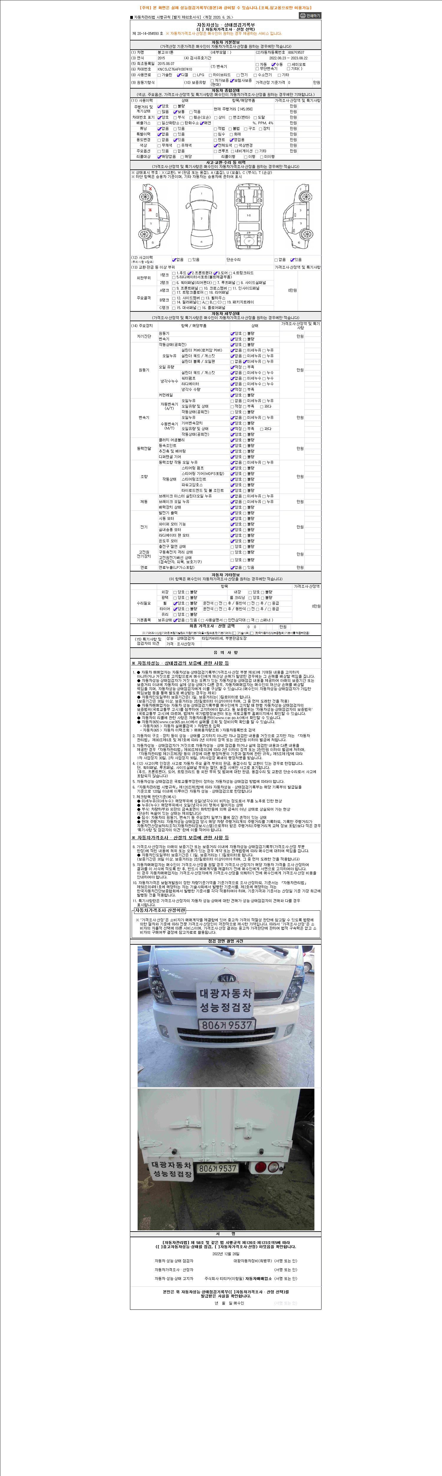 - 2. 차량 등록증이나 성능점검지 등을 상담자에게 요청및 확인하시고 사전에 미리 점검 하시기를 권유드립니다.
