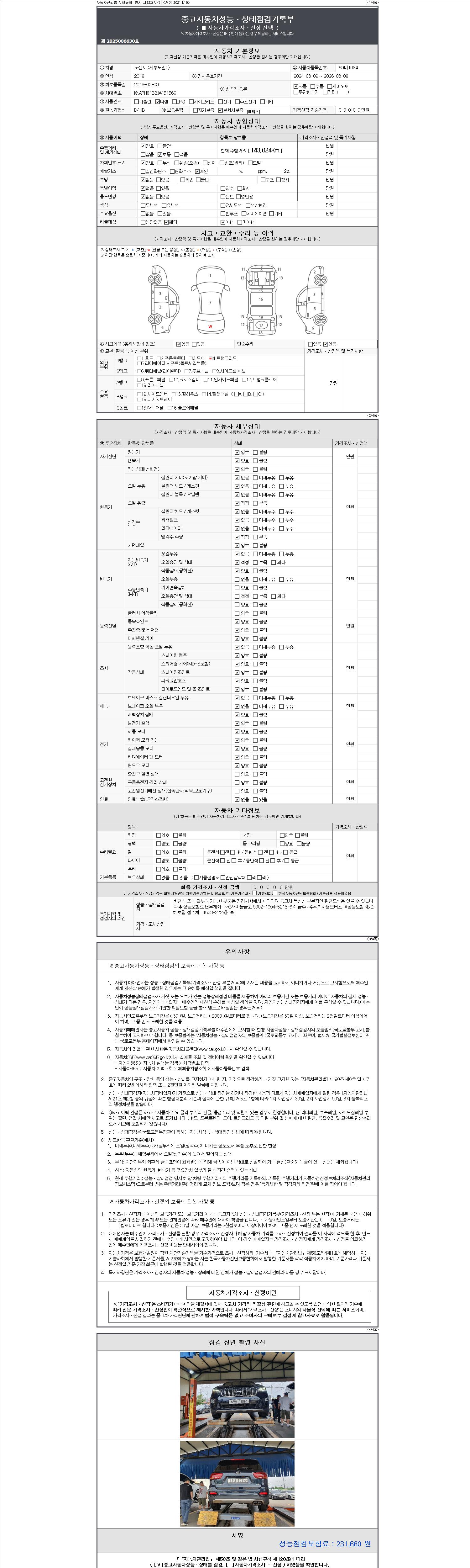 | 주행거리 | 143,010 km | 차량번호 | 69너1084 | 사고유무 | 성능기록부 참조 | 제시번호 | 제 2147483647 호 |