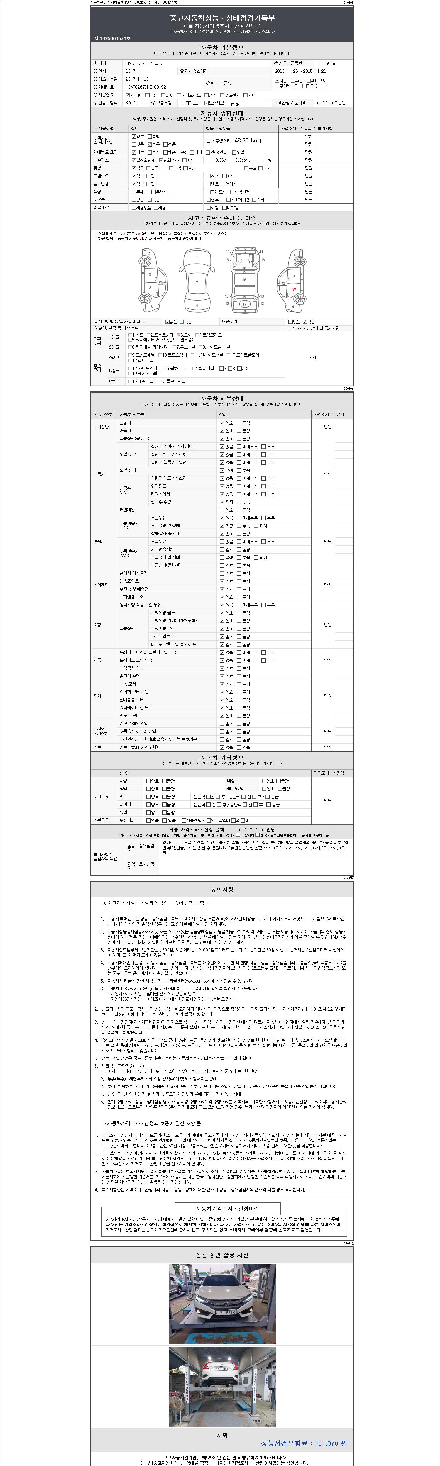 - 2. 차량 등록증이나 성능점검지 등을 상담자에게 요청및 확인하시고 사전에 미리 점검 하시기를 권유드립니다.