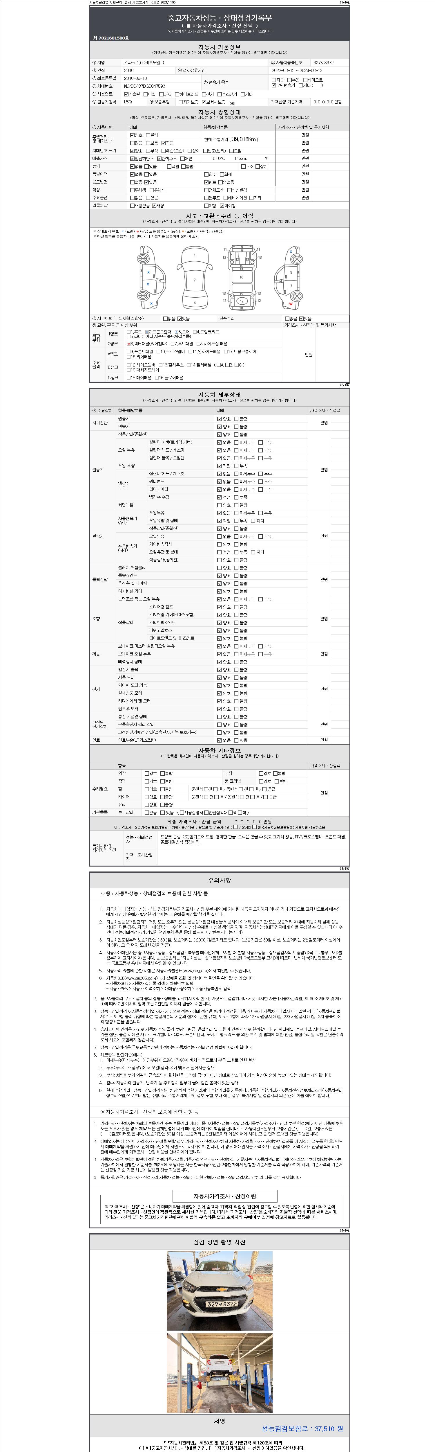 | 주행거리 | 39,010 km | 차량번호 | 327로8372 | 사고유무 | 성능기록부 참조 | 제시번호 | 제 2147483647 호 |