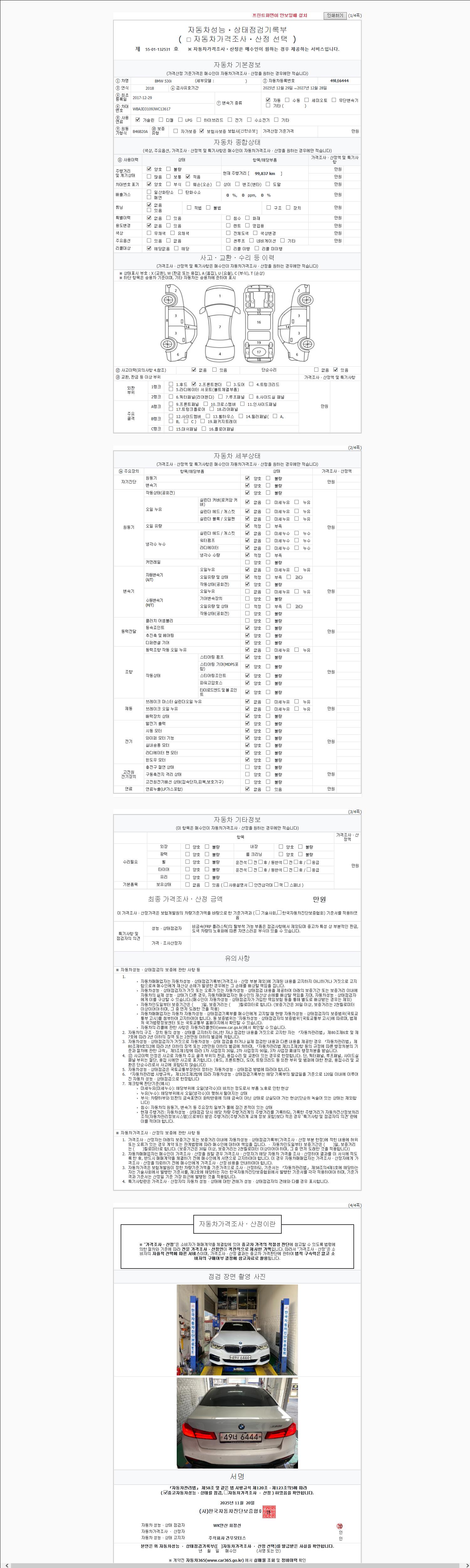 -중고자동차 매매업자를 통해 차량을 구입하실 경우 반드시 "중고자동차 성능, 상태점검 기록부"를 교뷰 받으셔야 하며, 매매업자는 반드시 의무 교부 하여야 압니다.