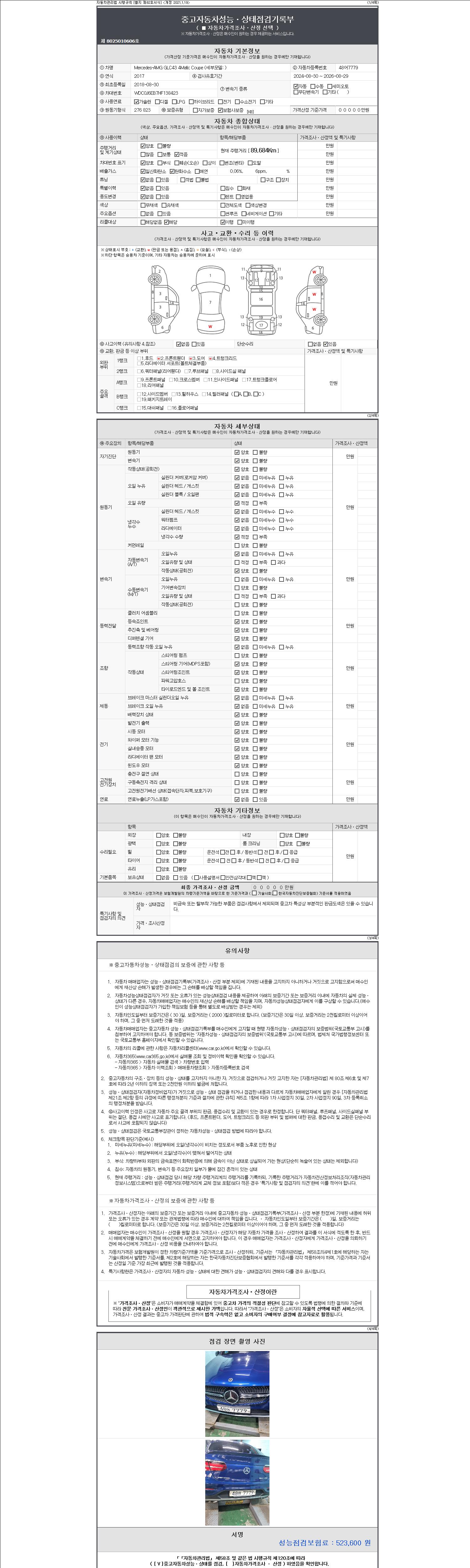 -중고자동차 매매업자를 통해 차량을 구입하실 경우 반드시 "중고자동차 성능, 상태점검 기록부"를 교뷰 받으셔야 하며, 매매업자는 반드시 의무 교부 하여야 압니다.