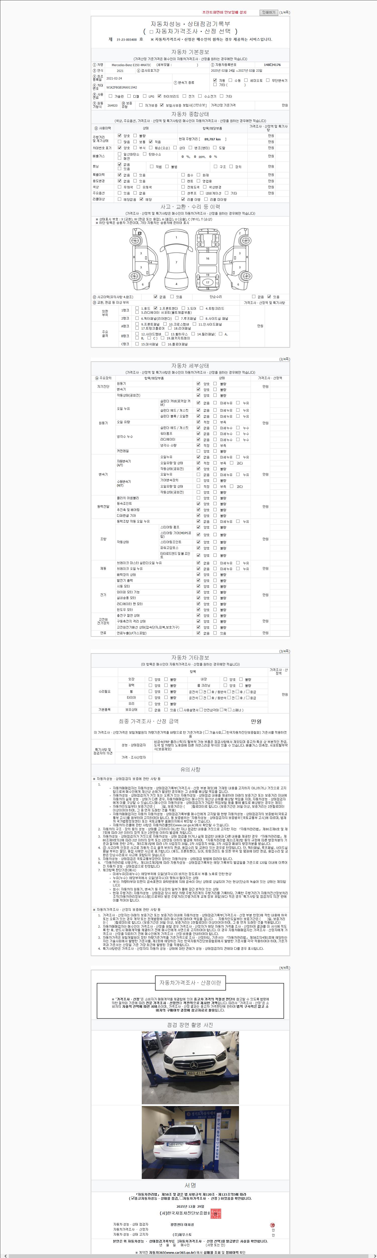 | 주행거리 | 89,787 km | 차량번호 | 148다4176 | 사고유무 | 성능기록부 참조 | 제시번호 | 제 2147483647 호 |