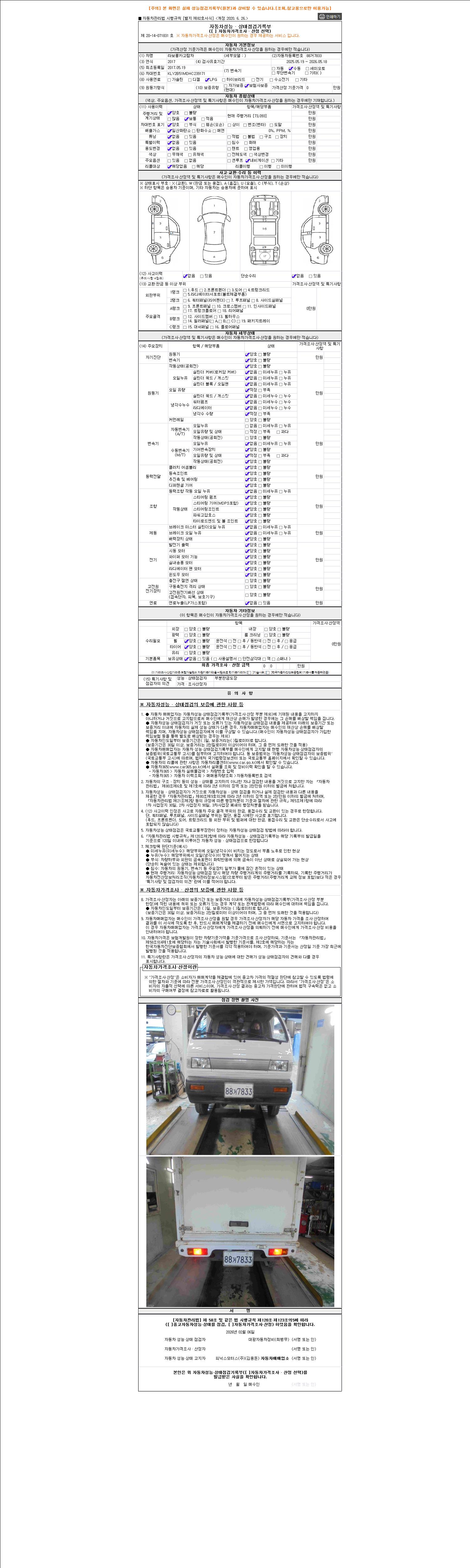 - 2. 차량 등록증이나 성능점검지 등을 상담자에게 요청및 확인하시고 사전에 미리 점검 하시기를 권유드립니다.