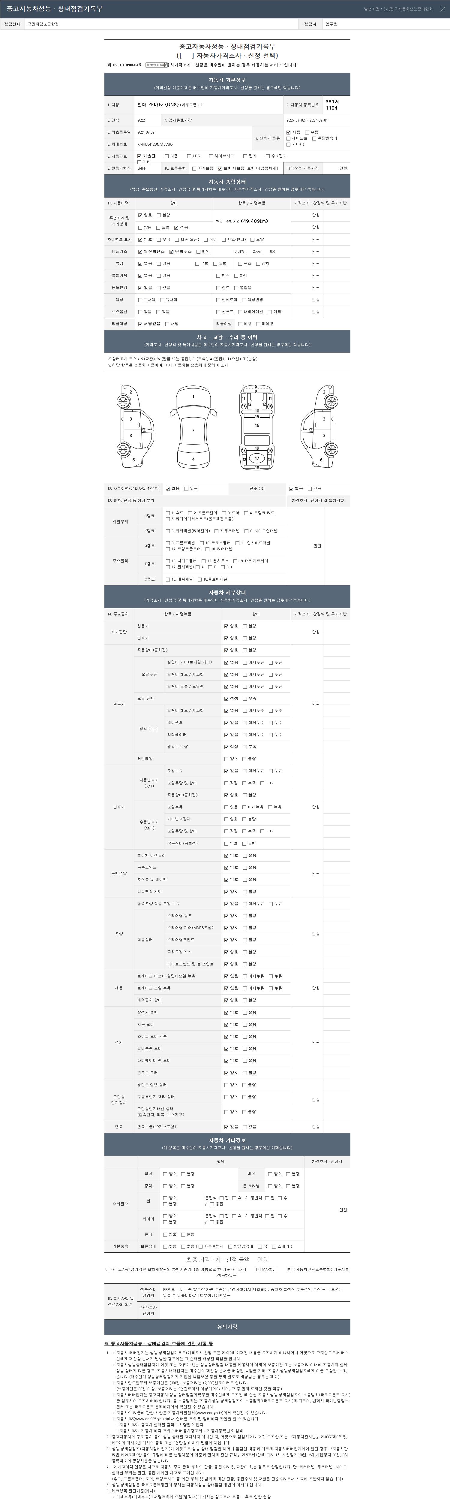 -중고자동차 매매업자를 통해 차량을 구입하실 경우 반드시 "중고자동차 성능, 상태점검 기록부"를 교뷰 받으셔야 하며, 매매업자는 반드시 의무 교부 하여야 압니다.