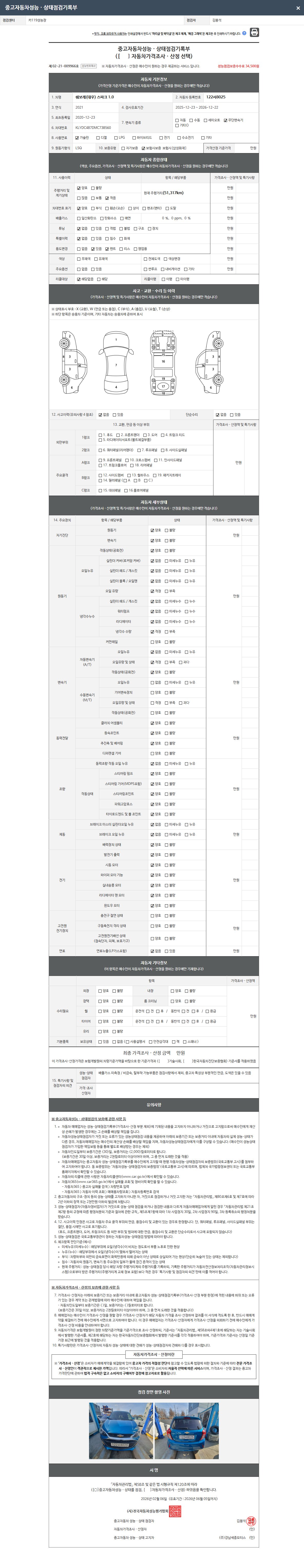 -중고자동차 매매업자를 통해 차량을 구입하실 경우 반드시 "중고자동차 성능, 상태점검 기록부"를 교뷰 받으셔야 하며, 매매업자는 반드시 의무 교부 하여야 압니다.