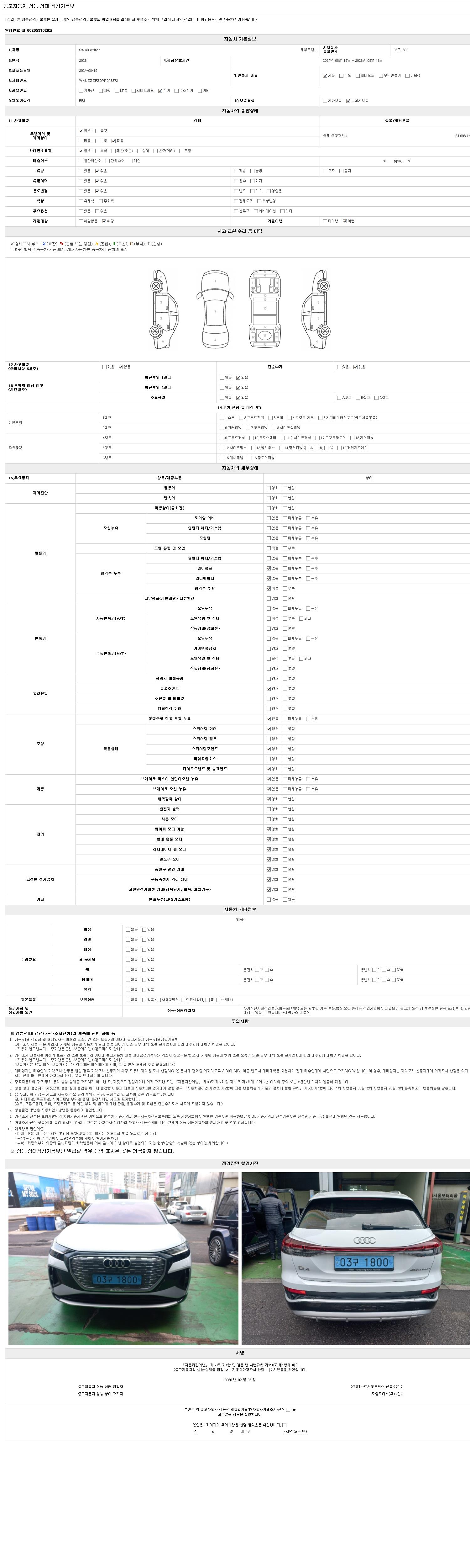 - 2. 차량 등록증이나 성능점검지 등을 상담자에게 요청및 확인하시고 사전에 미리 점검 하시기를 권유드립니다.