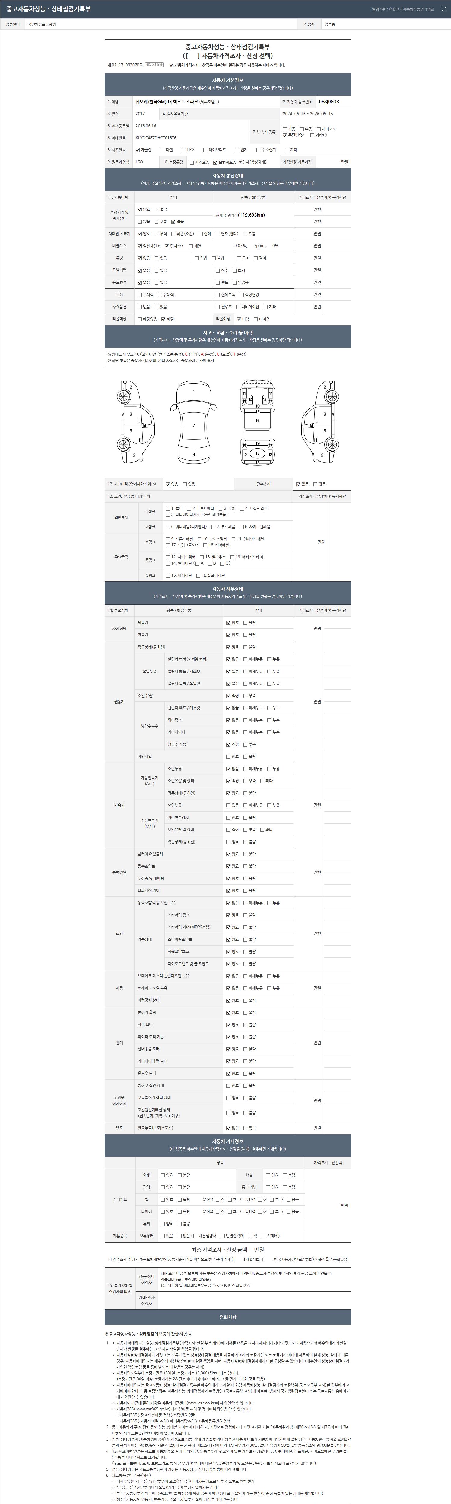 - 사고유무 : 성능기록부 참조