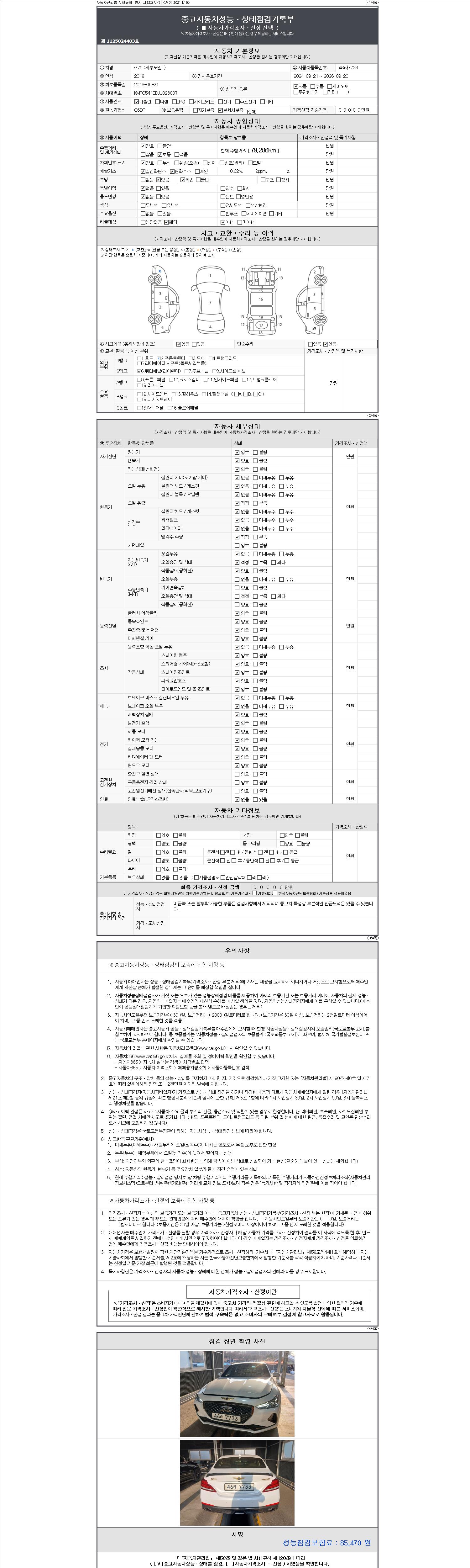 | 주행거리 | 79,286 km | 차량번호 | 46라7733 | 사고유무 | 성능기록부 참조 | 제시번호 | 제 2147483647 호 |