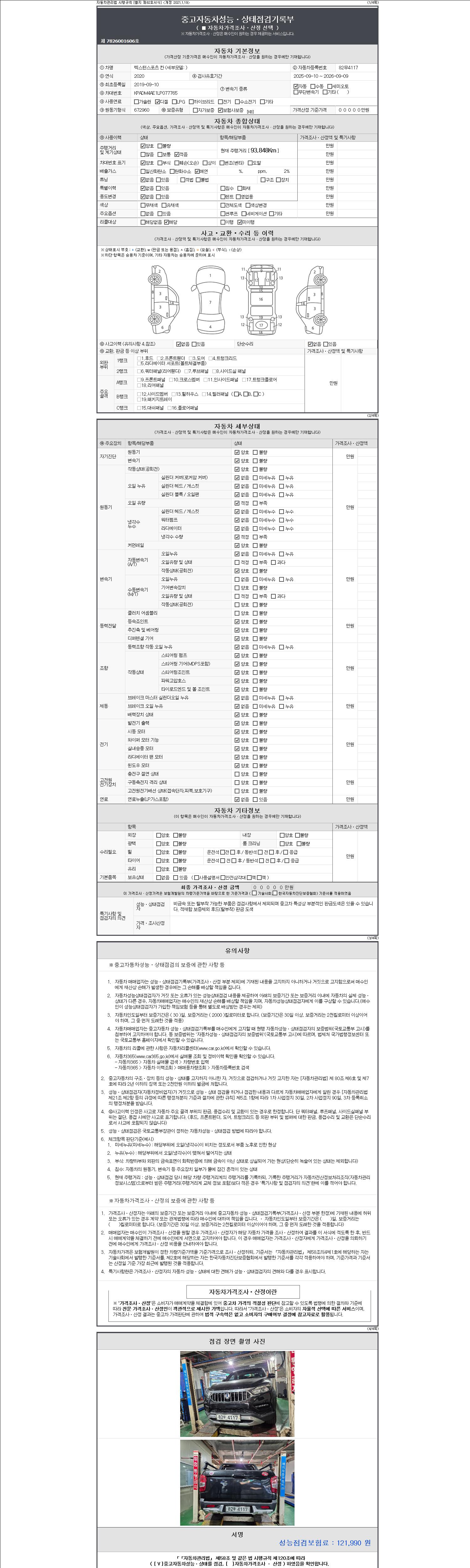 | 주행거리 | 93,848 km | 차량번호 | 82무4117 | 사고유무 | 성능기록부 참조 | 제시번호 | 제 2147483647 호 |