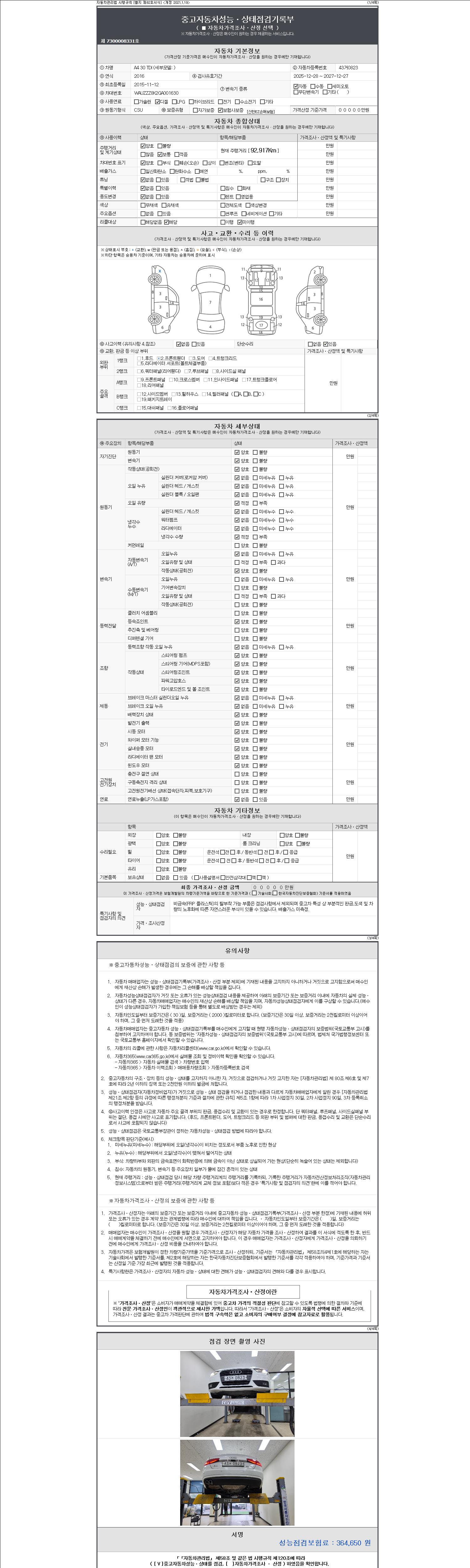 - 2. 차량 등록증이나 성능점검지 등을 상담자에게 요청및 확인하시고 사전에 미리 점검 하시기를 권유드립니다.