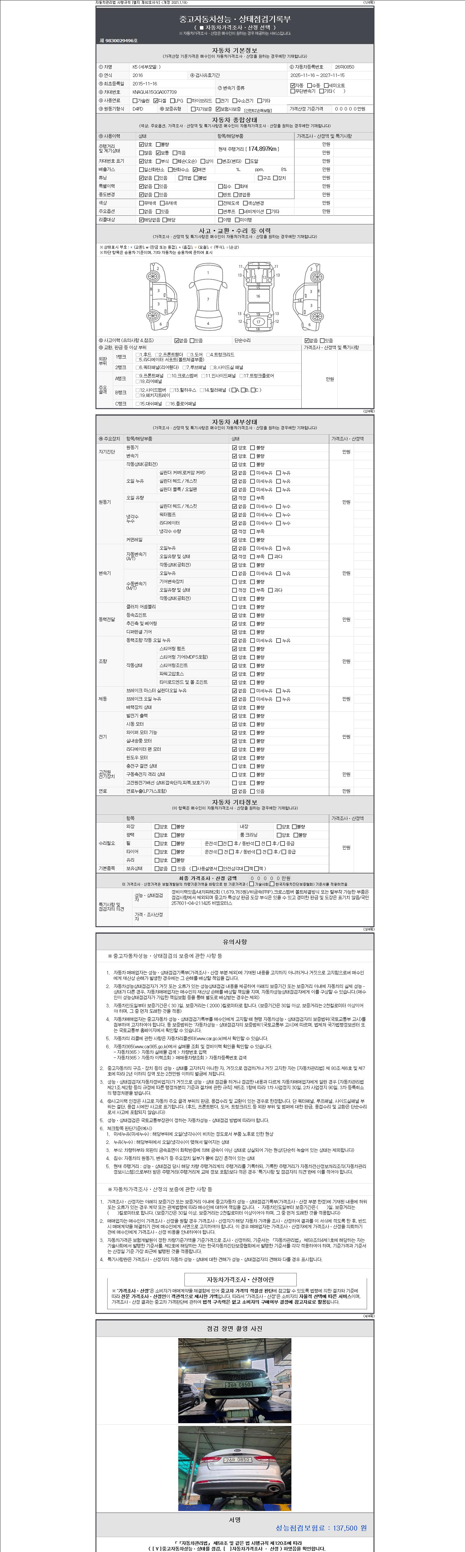 | 주행거리 | 174,897 km | 차량번호 | 26마0850 | 사고유무 | 성능기록부 참조 | 제시번호 | 제 2147483647 호 |