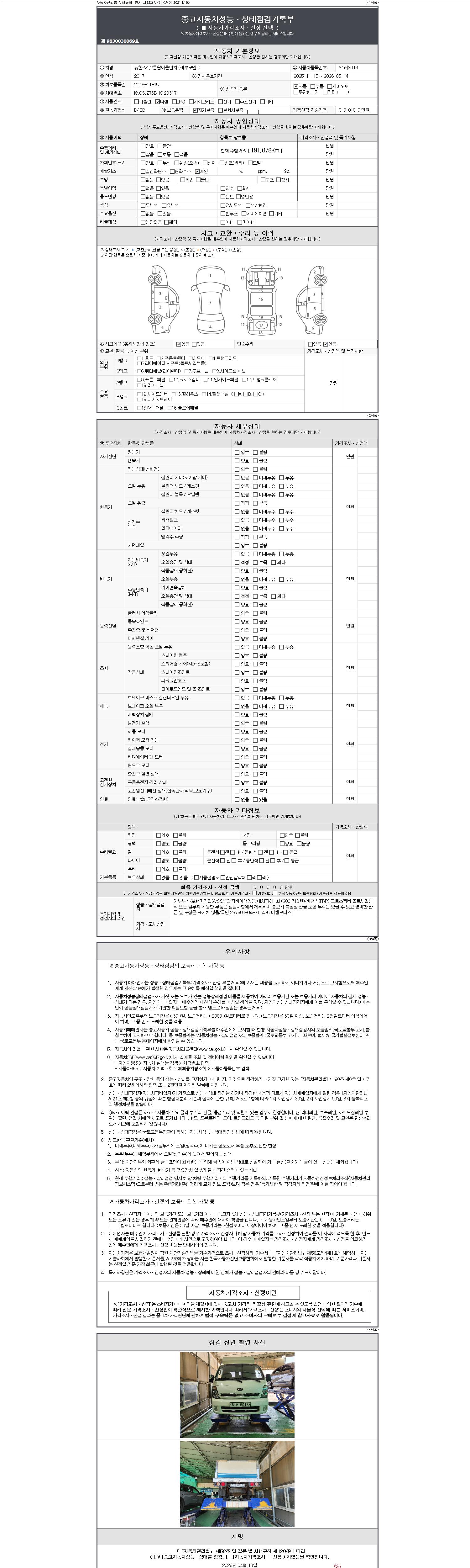 | 주행거리 | 191,078 km | 차량번호 | 81러8016 | 사고유무 | 성능기록부 참조 | 제시번호 | 제 2147483647 호 |