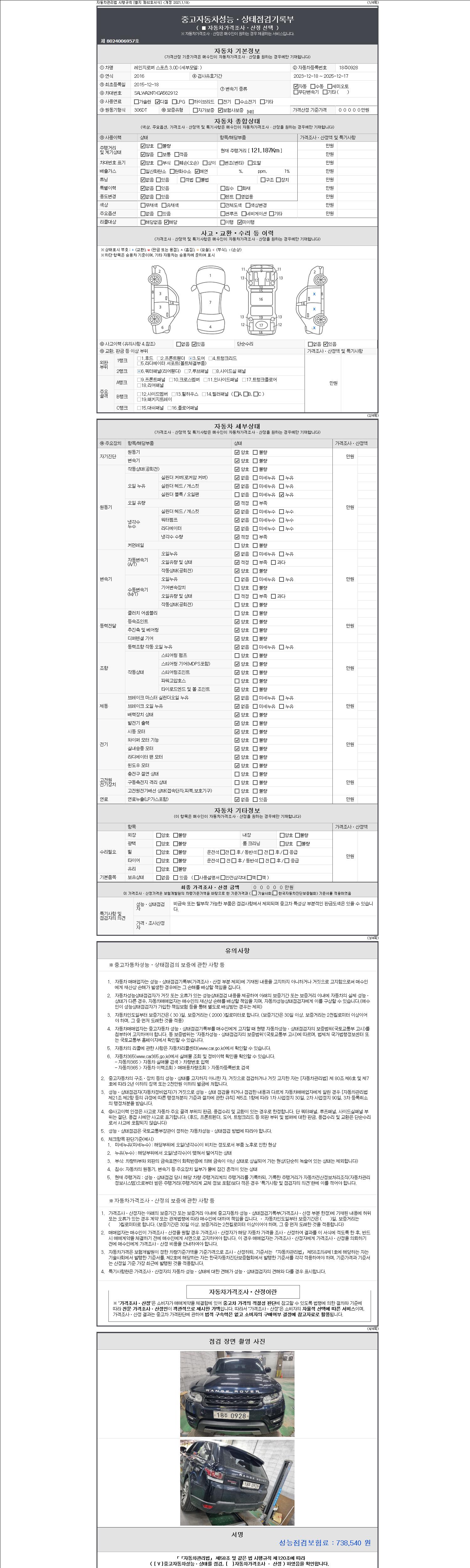 -중고자동차 매매업자를 통해 차량을 구입하실 경우 반드시 "중고자동차 성능, 상태점검 기록부"를 교뷰 받으셔야 하며, 매매업자는 반드시 의무 교부 하여야 압니다.
