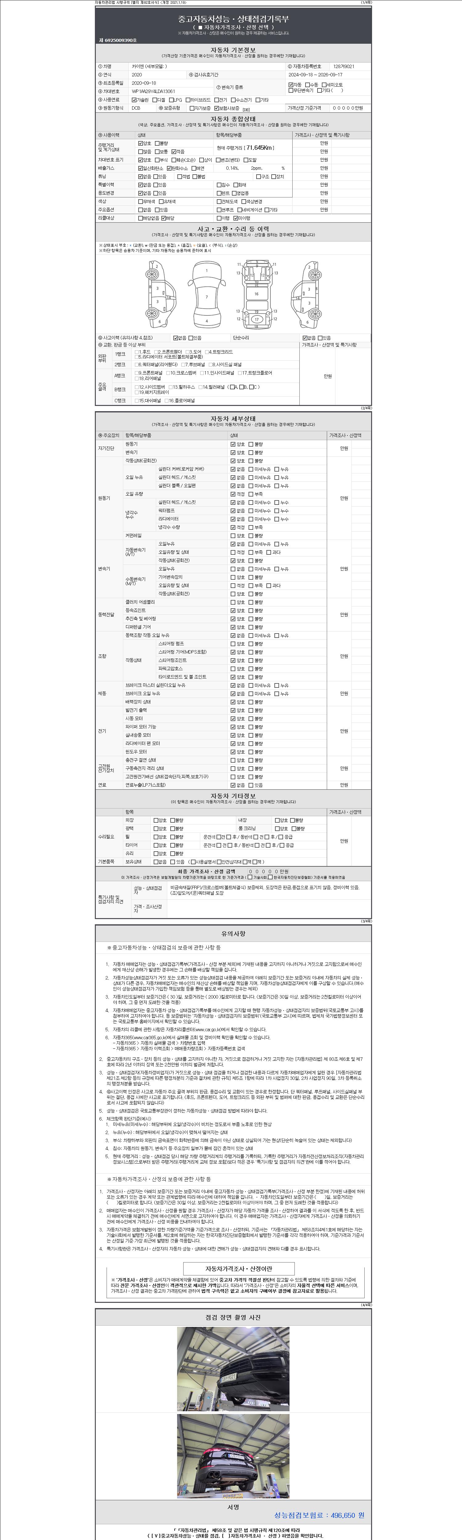 - 2. 차량 등록증이나 성능점검지 등을 상담자에게 요청및 확인하시고 사전에 미리 점검 하시기를 권유드립니다.