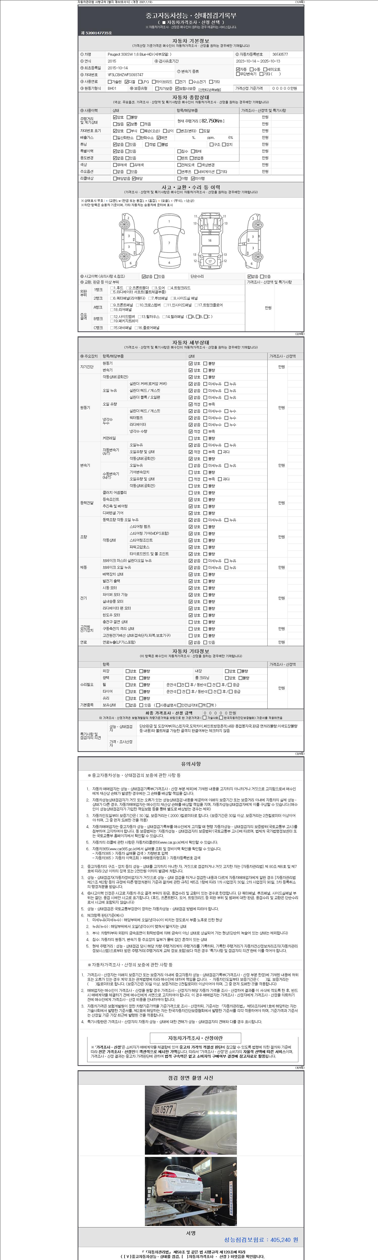 - 2. 차량 등록증이나 성능점검지 등을 상담자에게 요청및 확인하시고 사전에 미리 점검 하시기를 권유드립니다.