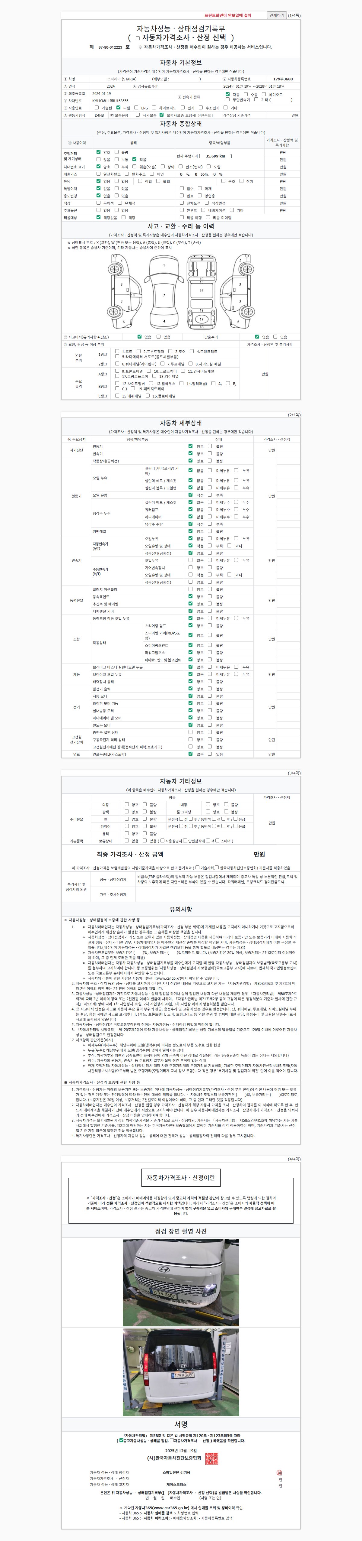 | 주행거리 | 35,699 km | 차량번호 | 179부3680 | 사고유무 | 성능기록부 참조 | 제시번호 | 제 2025041984 호 |