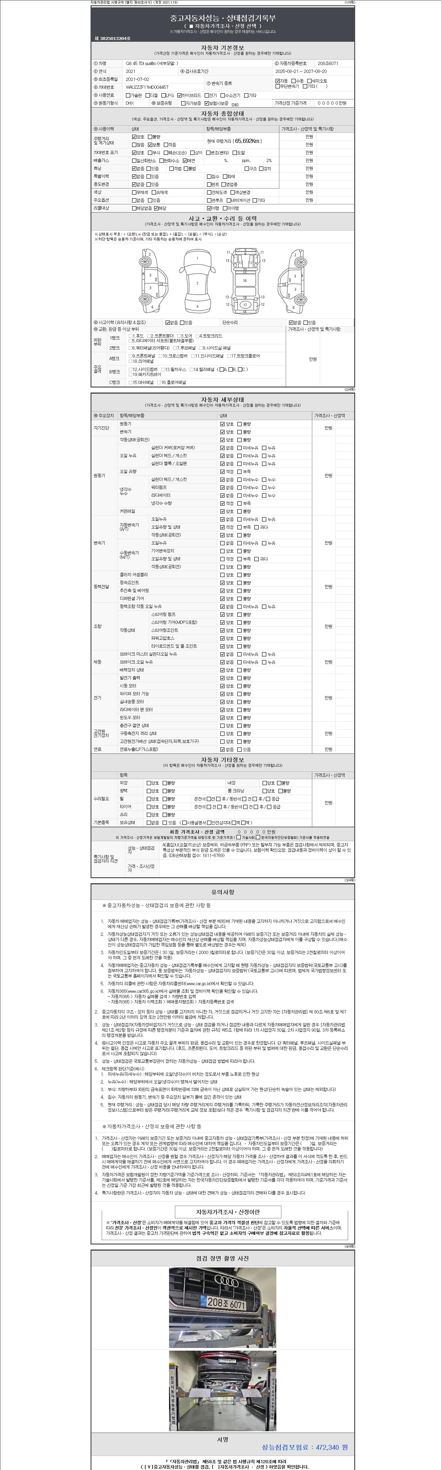 - 2. 차량 등록증이나 성능점검지 등을 상담자에게 요청및 확인하시고 사전에 미리 점검 하시기를 권유드립니다.