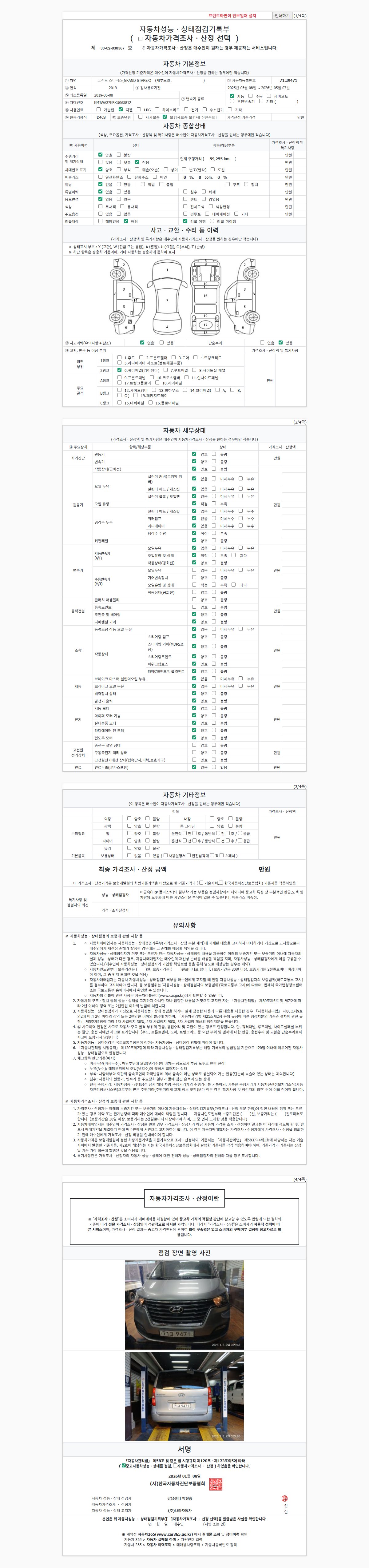 | 주행거리 | 59,255 km | 차량번호 | 71고9471 | 사고유무 | 성능기록부 참조 | 제시번호 | 제 2026002796 호 |