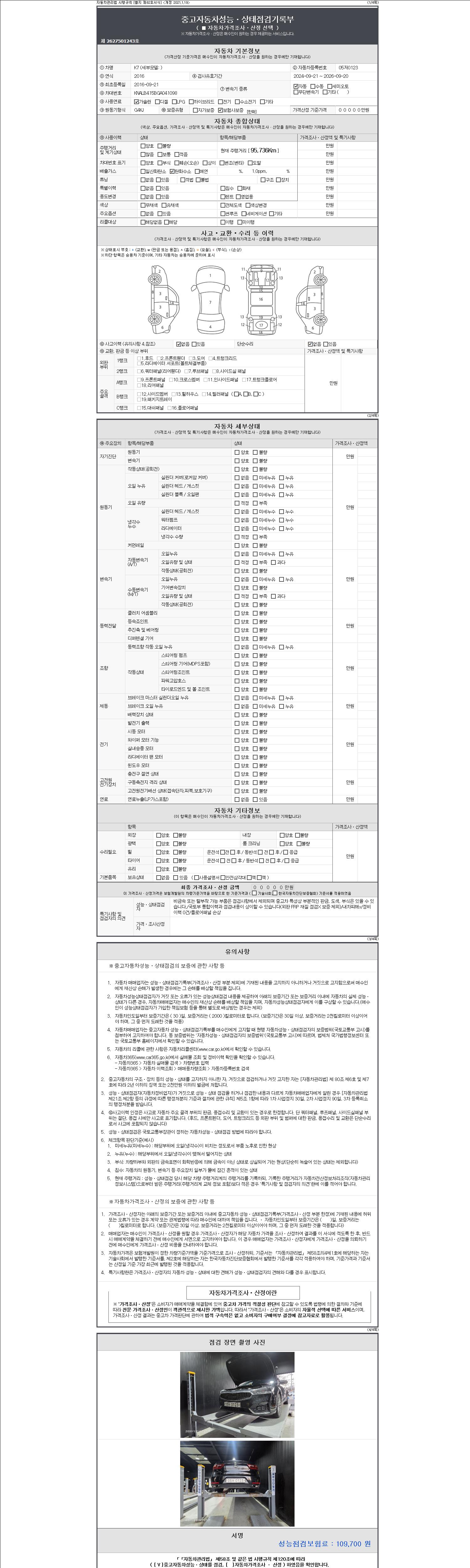 - 2. 차량 등록증이나 성능점검지 등을 상담자에게 요청및 확인하시고 사전에 미리 점검 하시기를 권유드립니다.