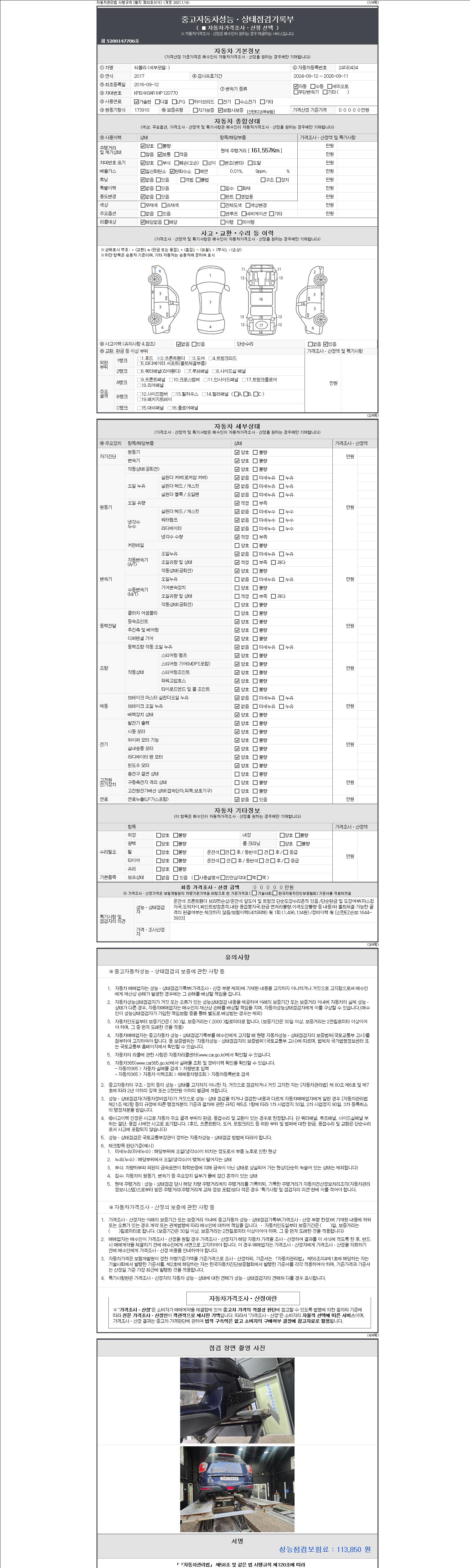| 주행거리 | 161,557 km | 차량번호 | 24더0434 | 사고유무 | 성능기록부 참조 | 제시번호 | 제 2147483647 호 |