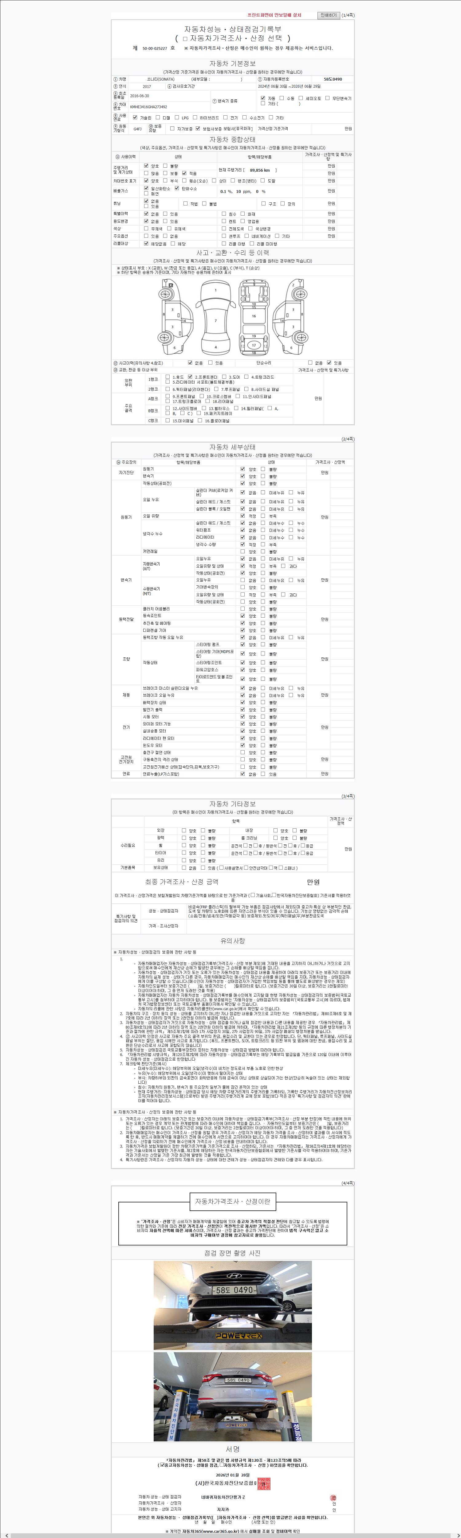 - 2. 차량 등록증이나 성능점검지 등을 상담자에게 요청및 확인하시고 사전에 미리 점검 하시기를 권유드립니다.