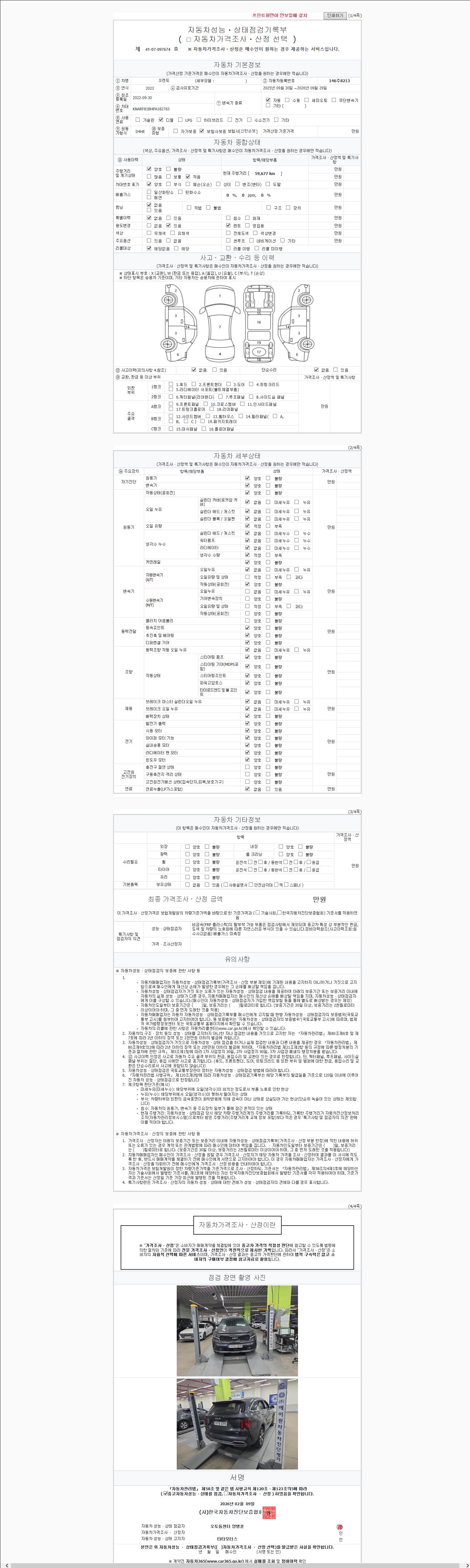 - 2. 차량 등록증이나 성능점검지 등을 상담자에게 요청및 확인하시고 사전에 미리 점검 하시기를 권유드립니다.