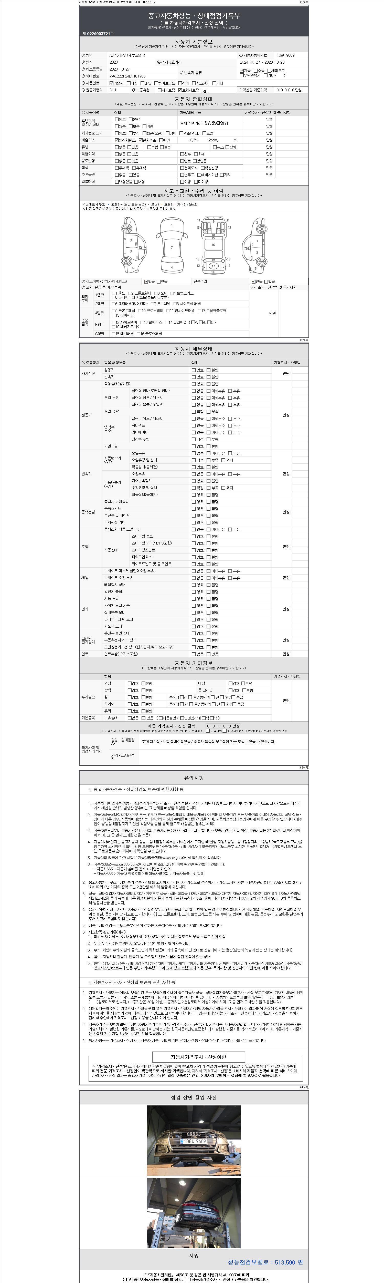 -중고자동차 매매업자를 통해 차량을 구입하실 경우 반드시 "중고자동차 성능, 상태점검 기록부"를 교뷰 받으셔야 하며, 매매업자는 반드시 의무 교부 하여야 압니다.
