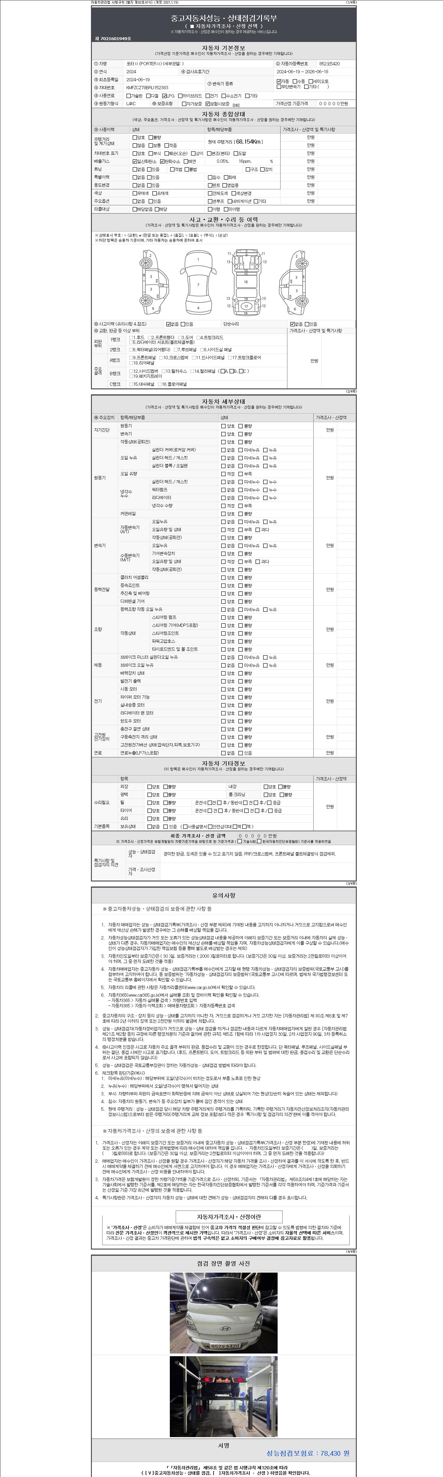 - 2. 차량 등록증이나 성능점검지 등을 상담자에게 요청및 확인하시고 사전에 미리 점검 하시기를 권유드립니다.