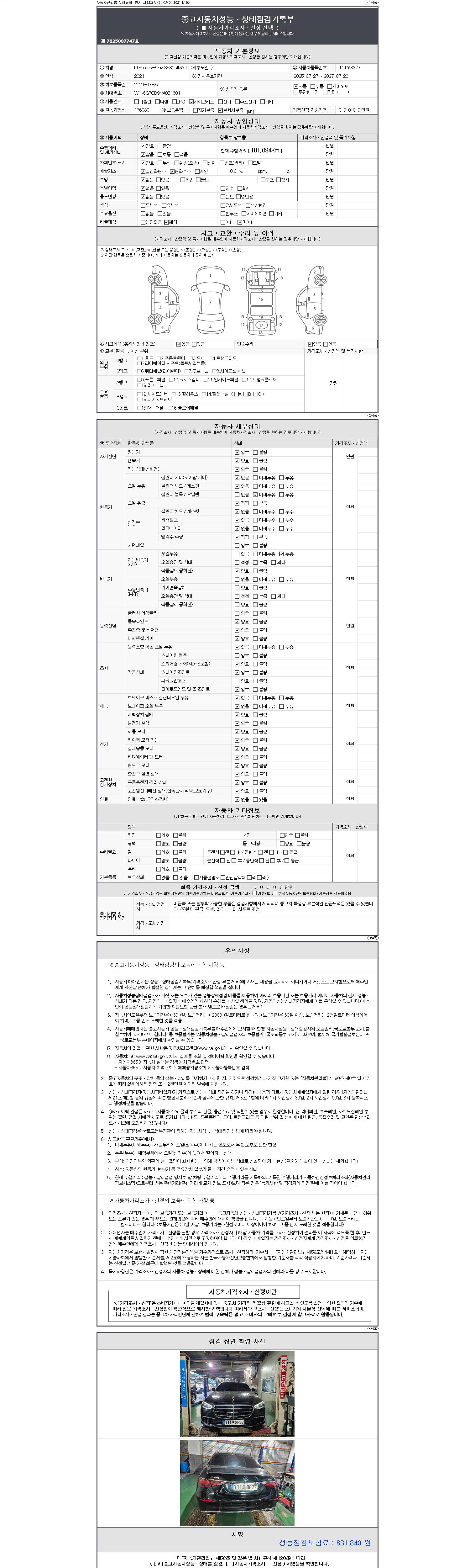 | 주행거리 | 101,094 km | 차량번호 | 111오8877 | 사고유무 | 성능기록부 참조 | 제시번호 | 제 2147483647 호 |