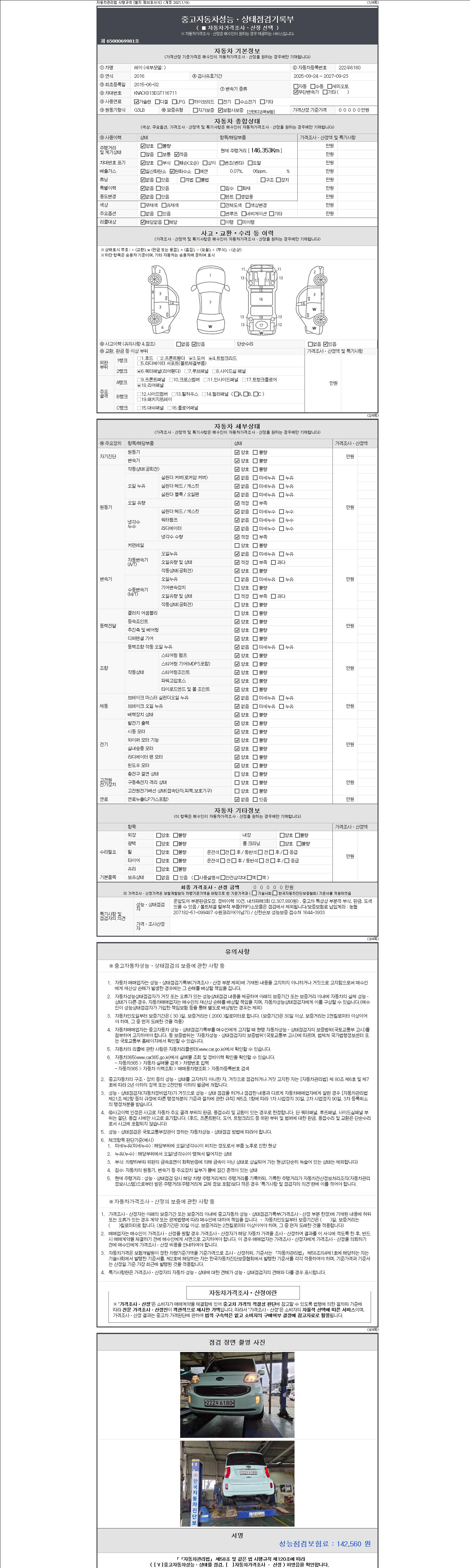 - 사고유무 : 성능기록부 참조