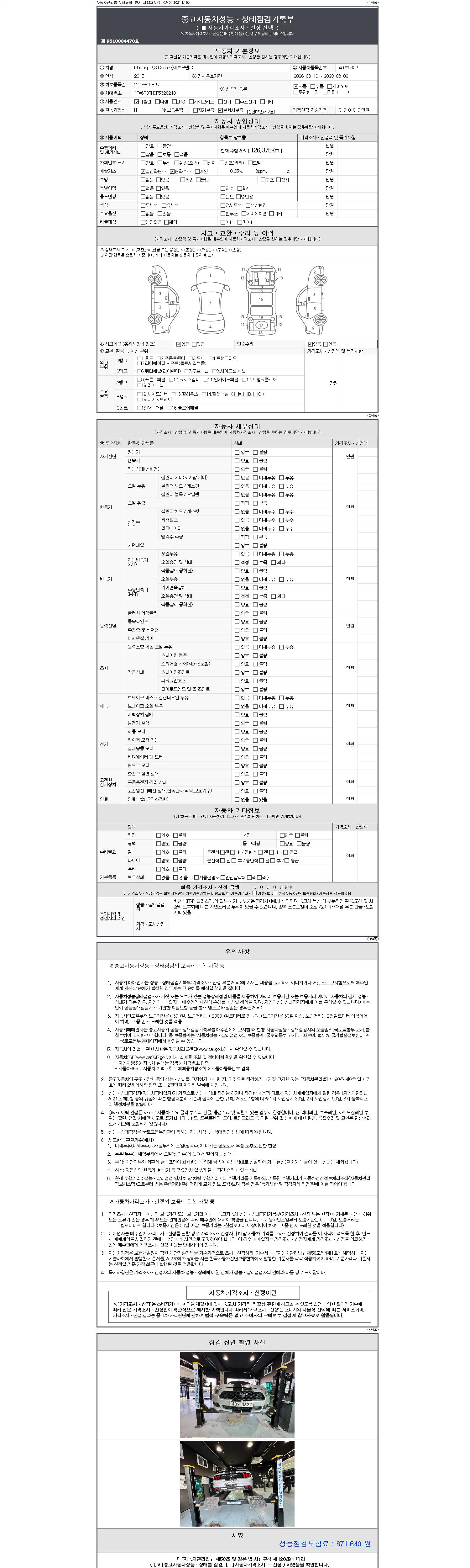 | 주행거리 | 126,375 km | 차량번호 | 40루0622 | 사고유무 | 성능기록부 참조 | 제시번호 | 제 2147483647 호 |