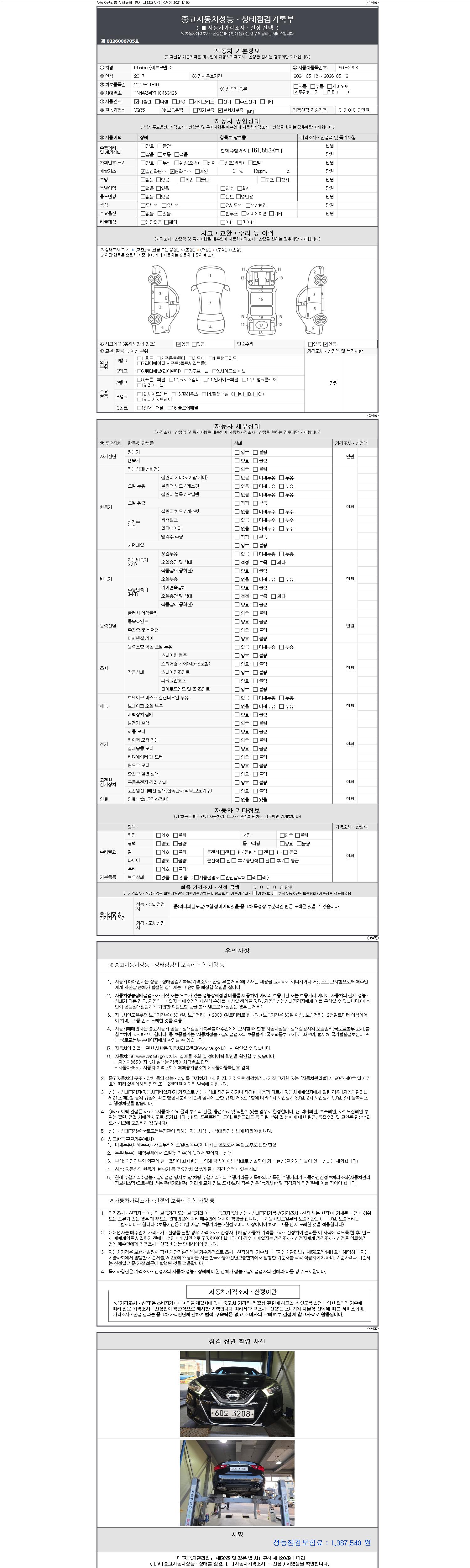 | 주행거리 | 161,553 km | 차량번호 | 60도3208 | 사고유무 | 성능기록부 참조 | 제시번호 | 제 2147483647 호 |