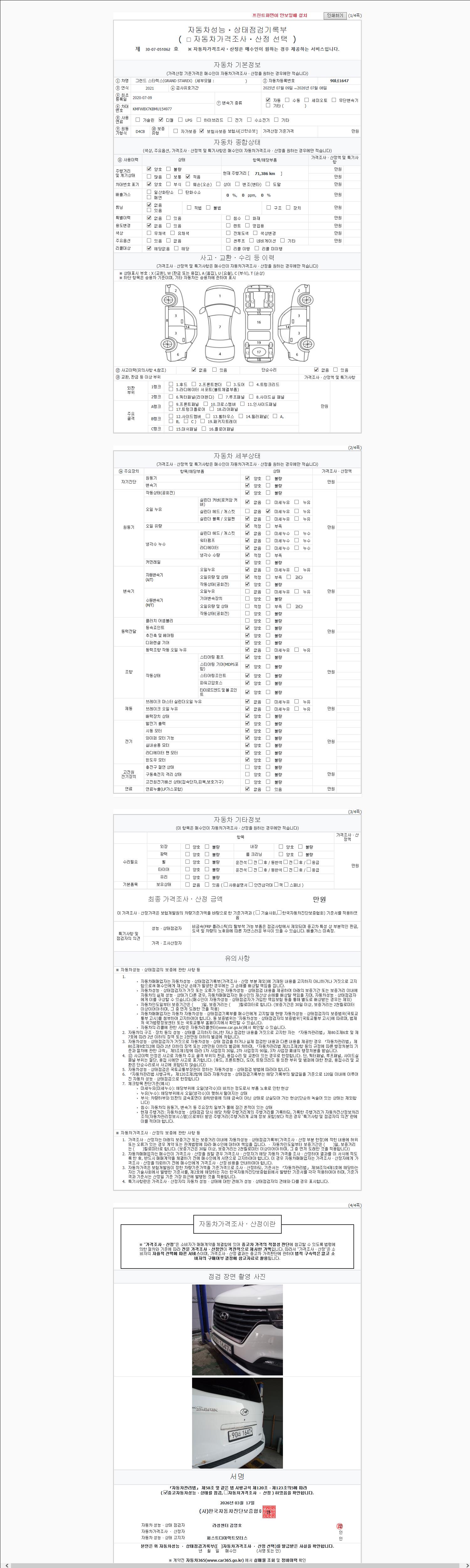 -중고자동차 매매업자를 통해 차량을 구입하실 경우 반드시 "중고자동차 성능, 상태점검 기록부"를 교뷰 받으셔야 하며, 매매업자는 반드시 의무 교부 하여야 압니다.