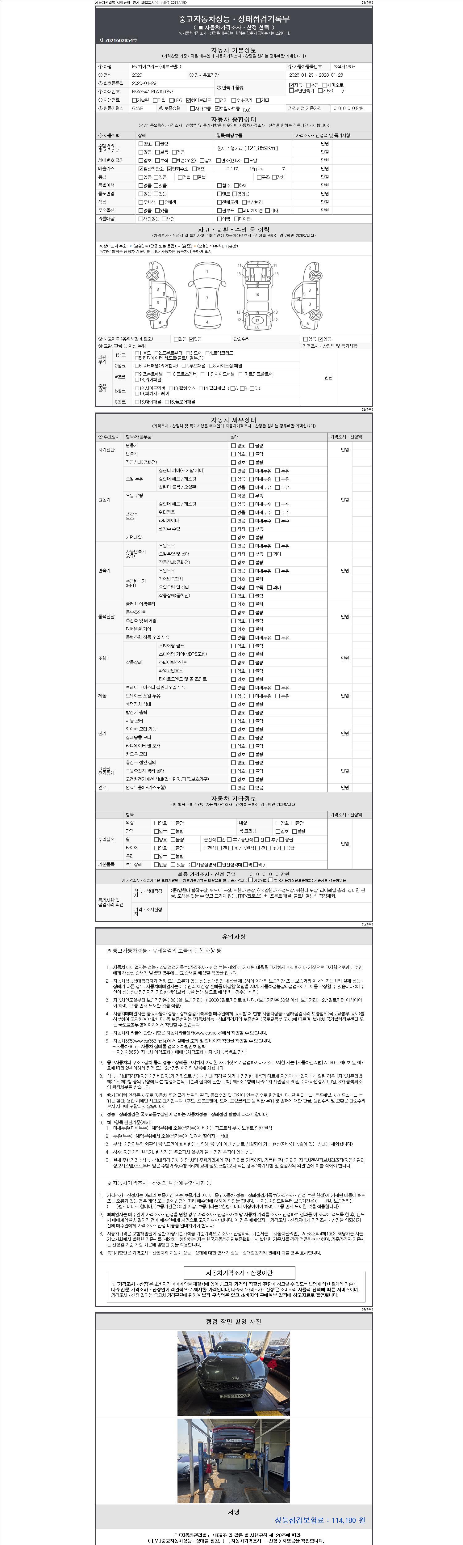 - 사고유무 : 성능기록부 참조
