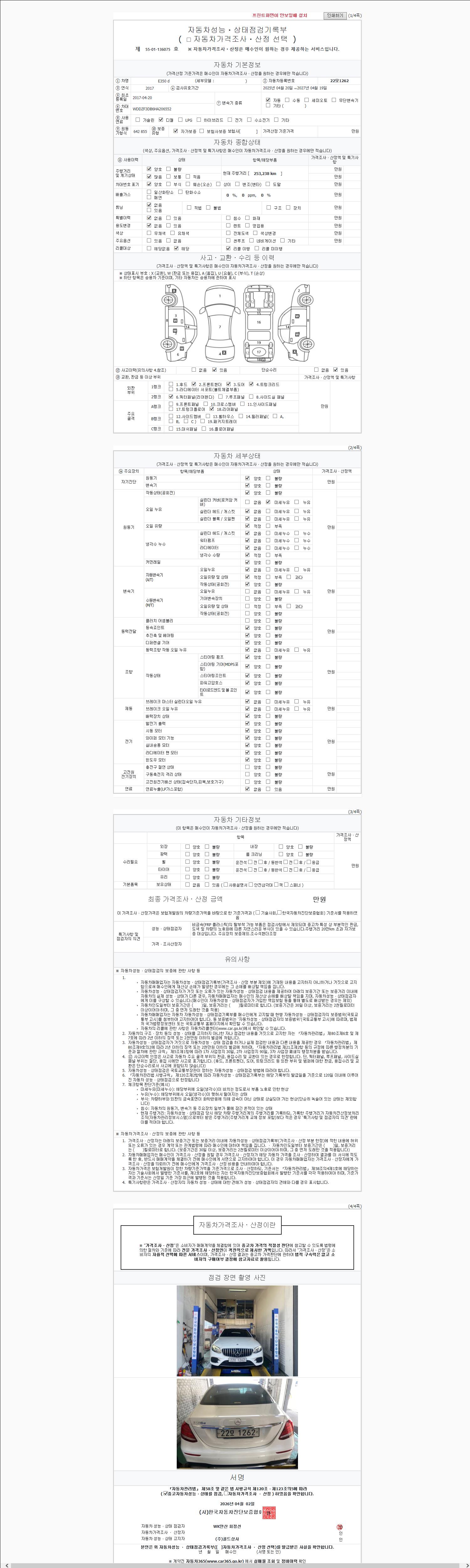 - 사고유무 : 성능기록부 참조