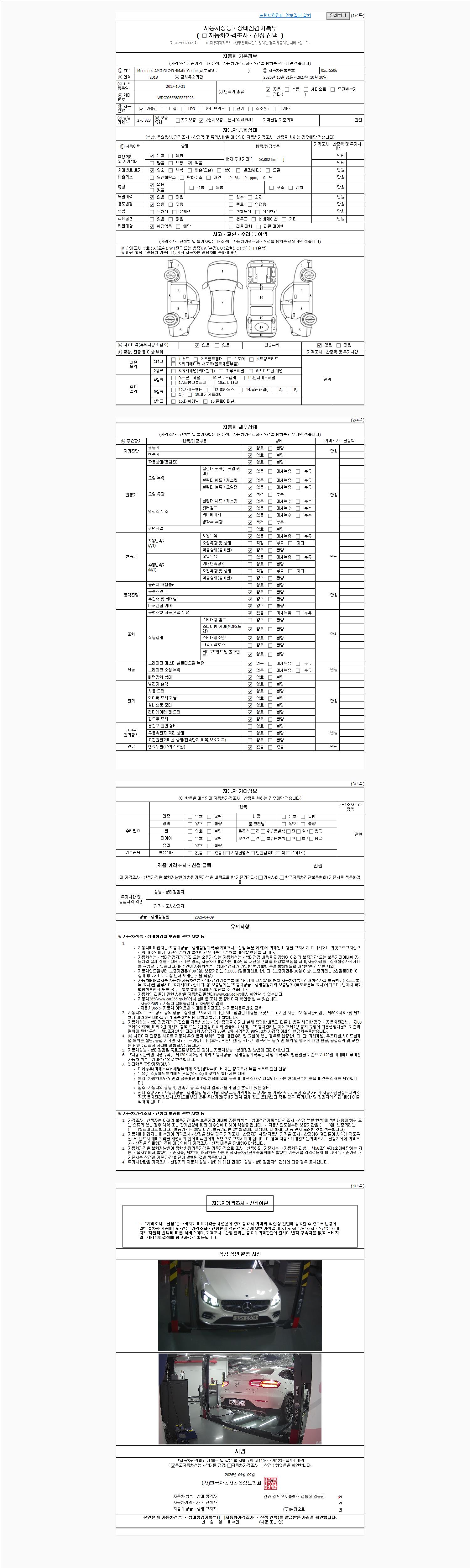 - 2. 차량 등록증이나 성능점검지 등을 상담자에게 요청및 확인하시고 사전에 미리 점검 하시기를 권유드립니다.