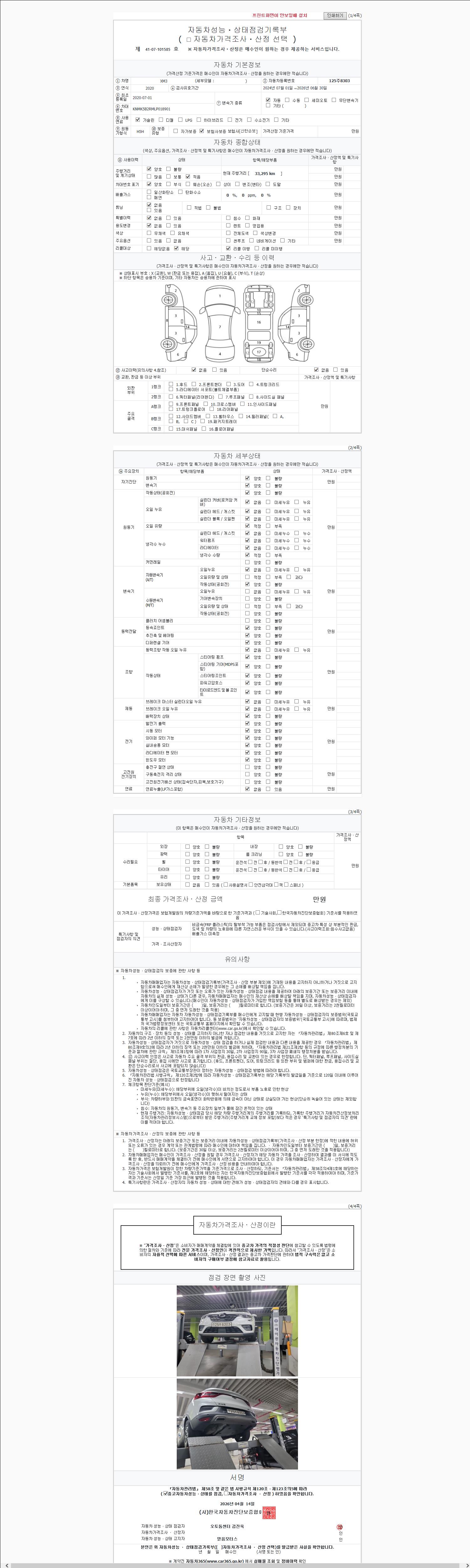 | 주행거리 | 33,295 km | 차량번호 | 125주8303 | 사고유무 | 성능기록부 참조 | 제시번호 | 제 2147483647 호 |
